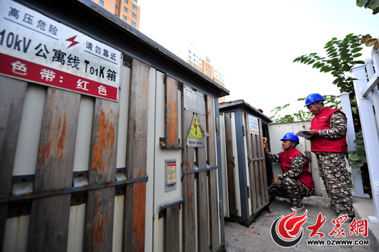 保電人員在巡視劇目展演場館的供電設備,確保萬無一失