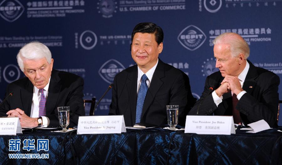 2012年2月14日,中國國家副主席習近平在華盛頓同美國副總統拜登共同出席中美企業家座談會。