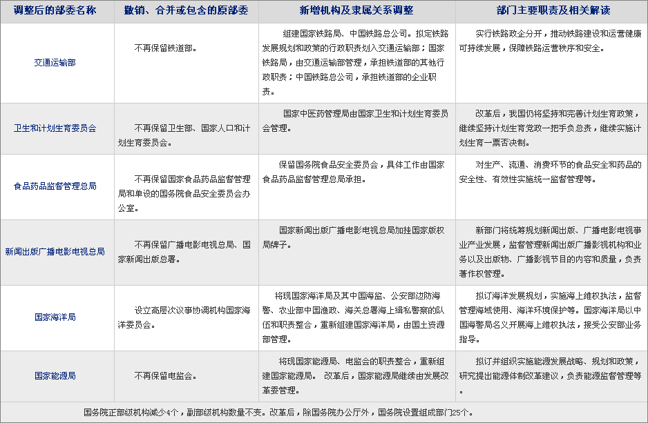 10日披露的國務(wù)院機構(gòu)改革和職能轉(zhuǎn)變方案表明,新一輪國務(wù)院機構(gòu)改革即將啟動,國務(wù)院組成部門將減少至25個。