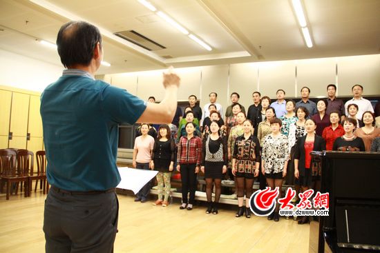 在煙臺文化中心,聲樂愛好者們在老師的指導下練習聲樂。記者 張帆 攝