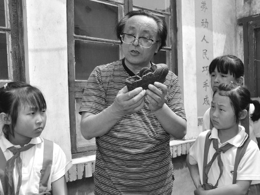 張洪慶給小學生們講解墨斗的歷史! 跬跫t軍 李榮新 王麥菊 報道
