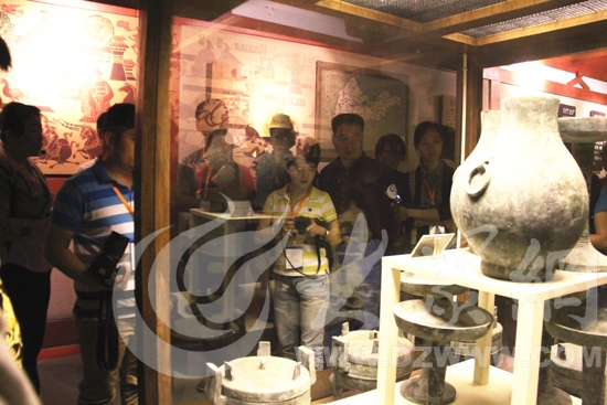 網(wǎng)絡(luò)媒體記者參觀采訪齊文化歷史博物館,領(lǐng)略齊國文化。見習(xí)記者 馬俊驥 攝