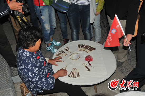 青州北門大街里,民間藝人在演示非物質(zhì)文化遺產(chǎn)“青州府花邊大套”制作技藝 見習記者 馬俊驥 攝