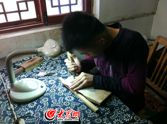 一名技師在演示木版年畫的刻版過(guò)程 見習(xí)記者 馬俊驥 攝