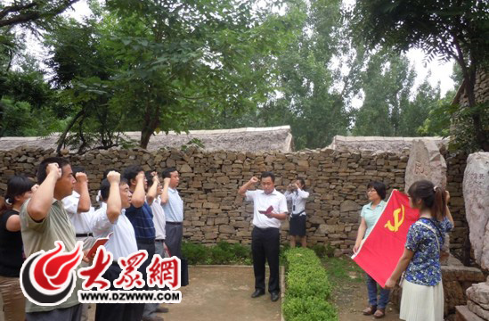 早6時,32名黨員干部集體乘車出發(fā)。途中,全體黨員認(rèn)真學(xué)習(xí)了《中國共產(chǎn)黨章程》,精神飽滿地唱起了《沒有共產(chǎn)黨就沒有新中國》、《團(tuán)結(jié)就是力量》等紅色歌曲。來到馬牧池教育基地后,大家不顧身體疲憊,接著就開始了參觀學(xué)習(xí),聽著講解員飽含深情的講解,看著珍貴的歷史資料,全體黨員無不為之吸引和感動。在沂蒙紅嫂王換于的事跡報告會現(xiàn)場,大家都留下了激動的淚水。在著名的革命歌曲《跟著共產(chǎn)黨走》的誕生地,大家面對刻有這首歌譜的石碑和鮮紅的黨旗,舉起右手莊嚴(yán)宣誓并重新唱響了這首革命歌曲。