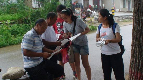 盡管天氣炎熱,條件艱苦,調(diào)研團(tuán)隊(duì)依然堅(jiān)持“走街串巷”,發(fā)傳單,做問(wèn)卷,開(kāi)座談。大家表示:艱苦的環(huán)境最能鍛煉人,大家認(rèn)真完成調(diào)研任務(wù),向駐守并奉獻(xiàn)在山區(qū)的“第一書(shū)記”學(xué)習(xí),傾聽(tīng)基層的聲音,學(xué)以致用,服務(wù)社會(huì)。