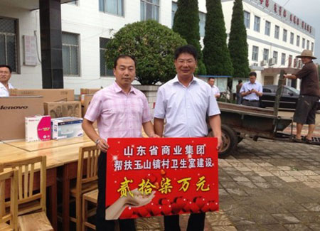 7月15日,山東省商業(yè)集團(tuán)向玉山鎮(zhèn)玉山衛(wèi)生院轄區(qū)內(nèi)8所村衛(wèi)生室捐贈(zèng)了總價(jià)值27萬元的辦公、醫(yī)療設(shè)備,并在玉山鎮(zhèn)玉山衛(wèi)生院舉行了捐贈(zèng)儀式。山東省商業(yè)集團(tuán)駐玉山“第一書記”張曉峰、張志國,臨沭縣衛(wèi)生局黨組書記、局長黃振現(xiàn)、辦公室主任郭敬軍,玉山鎮(zhèn)人民政府鎮(zhèn)長劉國棟、副鎮(zhèn)長張萍,玉山鎮(zhèn)玉山衛(wèi)生院院長李新聞出席了儀式。