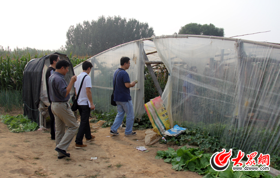 記者們來到楊光順家的拱棚進行采訪。記者 姜洋 攝