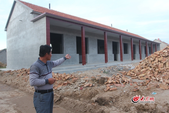 龐家村村支書王建軍向記者展示村里的新辦公室