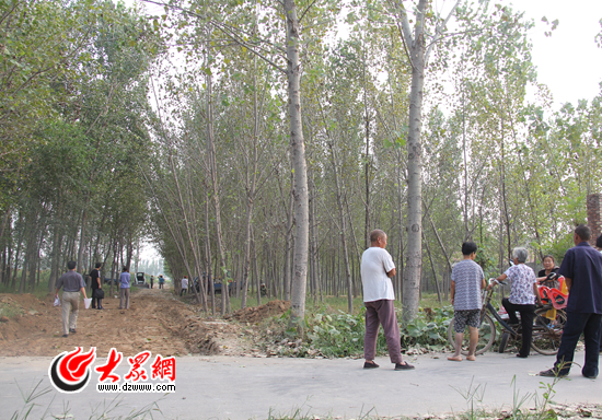 聽(tīng)說(shuō)孩子們每天上學(xué)走的土路要鋪瀝青了,蘆莊村的村民們都要過(guò)來(lái)看看。記者 姜洋 攝
