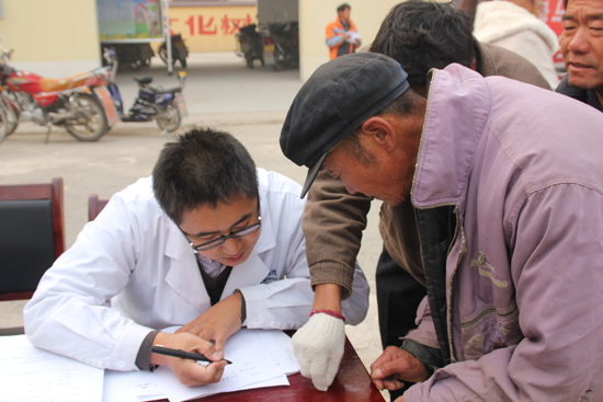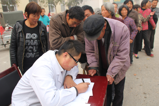 山東施爾明眼科醫院的醫生為村民們進行登記