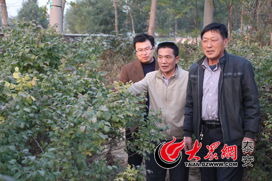 “第一書記”顧忠亮(右二)和村支書在玫瑰園探討發展之路。(實習生 刁云龍 攝) 大眾網泰安12月3日訊(記者 李蕾 實習生 刁云龍)顧忠亮,來自山東體育學院,2013年4月根據省委統一部署,他來到了尚元村擔任村里的“第一書記”。