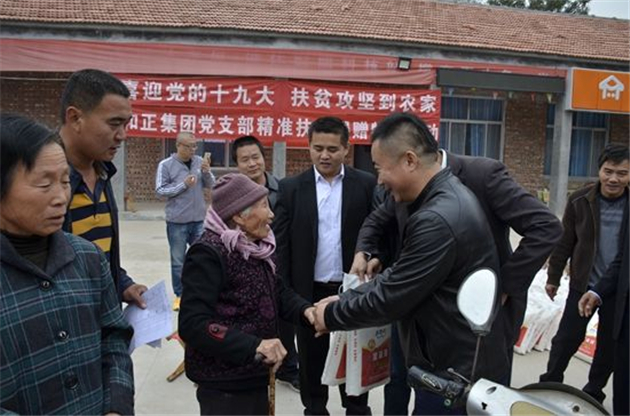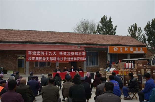 當天上午,圍繞著“喜迎黨的十九大、扶貧攻堅到農家”的捐獻活動正式開始。和正集團董事長范士猛代表和正集團向村民們發放了米、面、糧、油、棉等生活用品,共計兩萬余元。