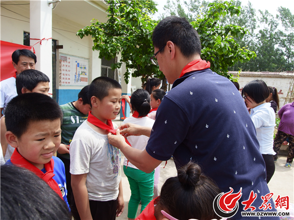 活動(dòng)中西紅廟村10名學(xué)生代表為出席活動(dòng)的各位領(lǐng)導(dǎo)佩戴紅領(lǐng)巾。莘縣團(tuán)縣委書記馮永雷在致辭中鼓勵(lì)小朋友們好好學(xué)習(xí),肩負(fù)起民族進(jìn)步,國(guó)家復(fù)興的歷史使命,同時(shí)對(duì)濟(jì)南大學(xué)駐村扶貧工作隊(duì)關(guān)心教育,關(guān)愛兒童和優(yōu)創(chuàng)數(shù)據(jù)技術(shù)有限公司的愛心善舉表達(dá)了敬佩和感謝。