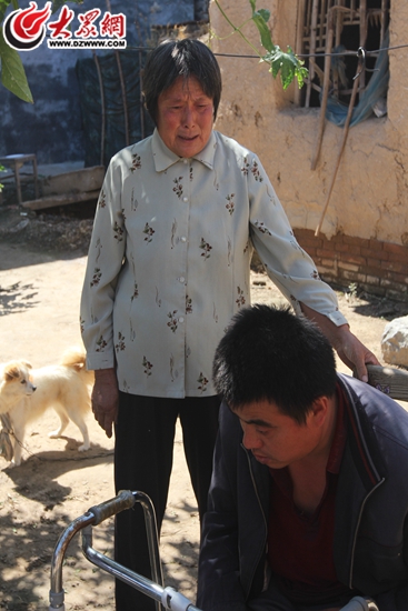 母親范美芝看著癱瘓的兒子,眼里充滿了心酸和無奈