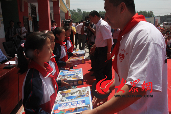 今天上午,省人大5位“第一書記”和愛心企業一起,將新書、新校服、新運動鞋等送往東平縣戴廟鎮中心小學孩子們的手中。