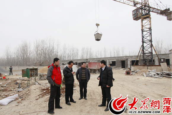 楊德峰、韓國梁在幼兒園施工現(xiàn)場查看進(jìn)度