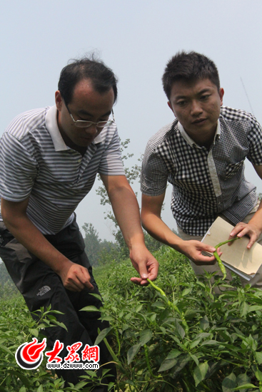 7月31日下午,大眾網董事長、總經理林忠禮帶領記者來到了大堤下的這片土地,原本的一片麥地現在卻種上了長線辣椒。賈洪斐說,今年4月,他邀請農科院的專家到范坡村實地調研,根據土壤條件決定引入長線辣椒。