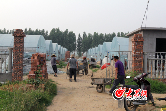 申維龍從臨沂煙草公司“借”來的16間新型大棚正在緊張施工,再過一個月,這里的路面將全部硬化,排水渠道也將全面建成。大眾網記者 尹海洋攝