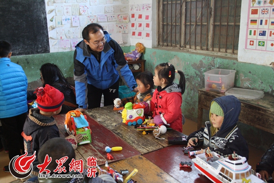 “第一書記”將青島大學捐贈的玩具和圖書送到孩子們手中。