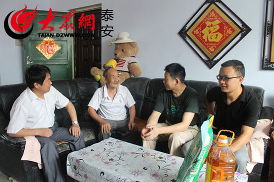 “第一書記”郭占祿(右二)、王振宇(右一)走訪社區(qū)老干部。(記者 張冉 攝影報道)