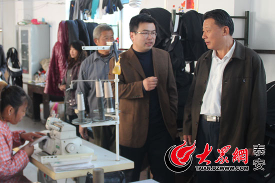 “第一書(shū)記”楊見(jiàn)奎(右二)在服裝廠了解情況。(實(shí)習(xí)生 刁云龍 攝)