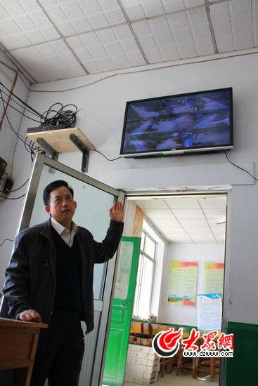 在西瓦莊村村委會(huì)的一面墻上,有一個(gè)大屏幕,從屏幕上可以看到村子主要干道的情況,這就是“第一書記”為村里安裝的監(jiān)控?cái)z像頭。