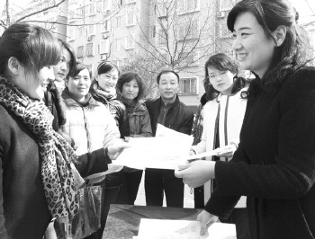 張店區(qū)檔案局下派社區(qū)書記崔延雪(右),上班第一天,為群眾宣傳法律知識。“社區(qū)‘第一書記’到崗后,將把促進社區(qū)的和諧穩(wěn)定和為居民解決實際問題作為工作重點。