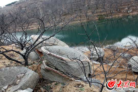 順著一條逼仄盤旋的山間小路,記者與村里人一道步行上山。山路陡峭,而就是這條陡峭的山路,也是村民們自發(fā)籌錢所建造的。上了山去,往下俯瞰,一片風(fēng)景盡收眼底,讓人豁然開朗。后峪村風(fēng)光秀麗,村后側(cè)有后觀水庫一座,水庫三面青山環(huán)繞,湖水清澈。水庫周邊植被旺盛、樹木眾多、奇石遍布,當(dāng)?shù)厝怂追Q“后觀原始森林”。