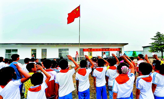 今天,界坊小學(xué)第一次升起了國(guó)旗(左圖)。這個(gè)村3年級(jí)以下的孩子在家門(mén)口就可以坐在寬敞明亮的教室里學(xué)習(xí)知識(shí),再也不用跑到三四公里之外的小學(xué)就讀。不僅如此,孩子們還得到了圖書(shū)、書(shū)包、教具、玩具等大宗“禮物”。