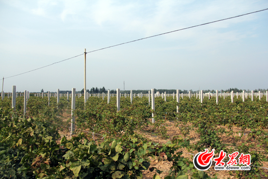 9月11日上午,記者來(lái)到張言村時(shí),村支書趙長(zhǎng)新正在葡萄園地里查看秧苗生長(zhǎng)情況。在一片玉米穗的包圍下,這片生長(zhǎng)了不到一年的葡萄園顯得十分醒目。趙長(zhǎng)新告訴記者,在山東省規(guī)劃設(shè)計(jì)研究院選派到張言村的“第一書記”李嵩的指導(dǎo)下,今年春天,他與村里其他20戶村民一起在玉米地上種起了葡萄。