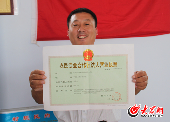 拿著合作社的營業執照,曲學水樂得合不攏嘴。記者 滿志旺 攝