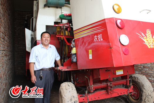 曲學水專門給聯合收割機蓋了一間“機房”。他說,這臺收割機是合作社的“開社功臣”。記者 滿志旺 攝