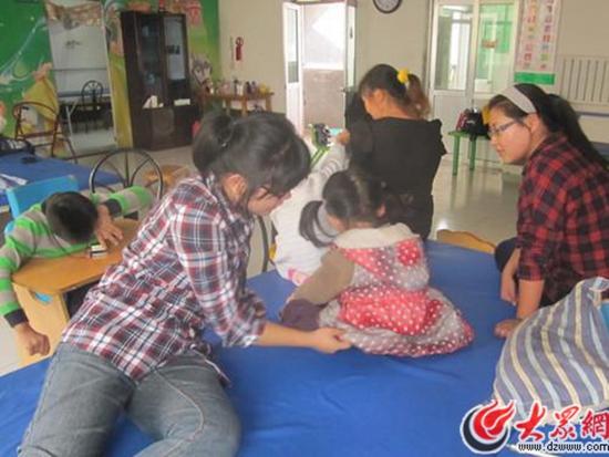 志愿者走進(jìn)濟(jì)南偉眾兒童康復(fù)中心照看特殊兒童