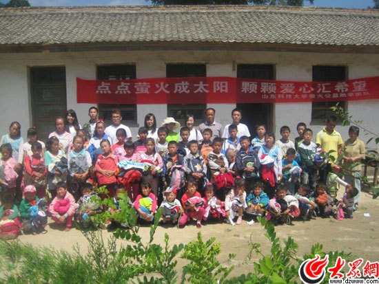 螢火公益助學(xué)團(tuán)隊(duì)是在山東科技大學(xué)外國語學(xué)院團(tuán)委指導(dǎo)下,由全校各院熱衷于公益事業(yè)的精英學(xué)子組成的,是一支集志愿服務(wù)、愛心捐贈(zèng)、公益助學(xué)、關(guān)注貧困山區(qū)教育為一體的公益助學(xué)團(tuán)隊(duì)。