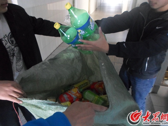 愛心宿舍,就是和別的宿舍進行協商,讓他們同意把平時喝完的飲料瓶、用完的演草紙等可回收生活垃圾交給我們處理,我們進宿舍進行物品收集,再統一把所收集的物品變賣成現金,我們有專門的人員進行財物管理。慢慢地逐漸累積,再把所有現金捐獻給慈善機構。我們每次進宿舍收集物品都會詳細記載,并且會把收集物品以及所獲現金進行公示,保證財務的公開、透明。我們給每個加入“愛心宿舍”的宿舍一個紙箱子,專門用來放置可回收的生活垃圾。我們采取進宿舍的收集方式,使宿舍便利最大化,所有的工作都是我們做,不給加入“愛心宿舍”的同學帶來太多不便。