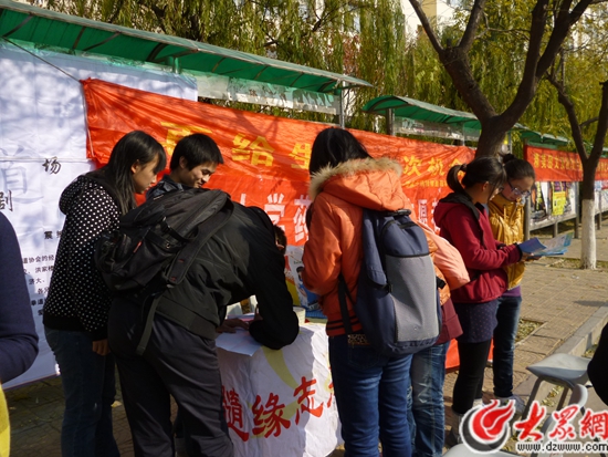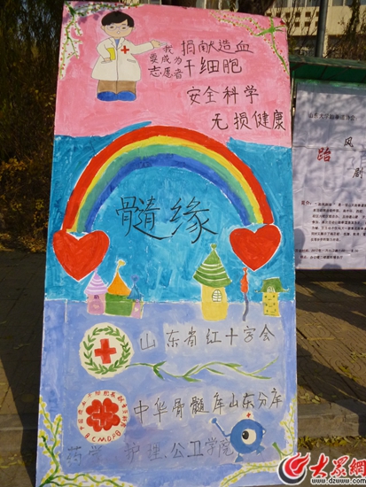 為了拯救更多的生命,近年來(lái),中國(guó)紅十字會(huì)建立了中華骨髓庫(kù)以增加配型成功的可能性。2012年以來(lái),在山東省紅十字會(huì)的建議及支持下,我們山東大學(xué)藥學(xué)院青志協(xié)開(kāi)展了以“無(wú)言大愛(ài),攜手共創(chuàng)生命奇跡”為主題的髓緣活動(dòng)。目前,我們已先后開(kāi)展了造血干細(xì)胞捐獻(xiàn)服務(wù)志愿者招募活動(dòng)以及捐獻(xiàn)造血干細(xì)胞的宣傳活動(dòng),并取得了完滿的勝利,成功建立起了干細(xì)胞捐獻(xiàn)志愿服務(wù)大隊(duì),并招募到一批志愿加入中華骨髓庫(kù)的的同學(xué)。