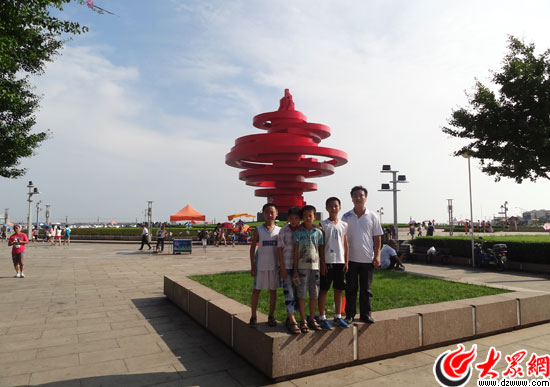 夏令營的老師和孩子游覽五四廣場