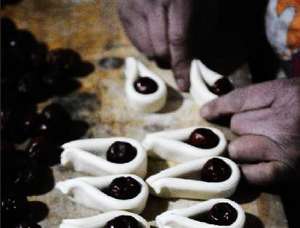 山東省聊城市陽谷縣僑潤街道辦事處城角徐村的村民在制作花糕。