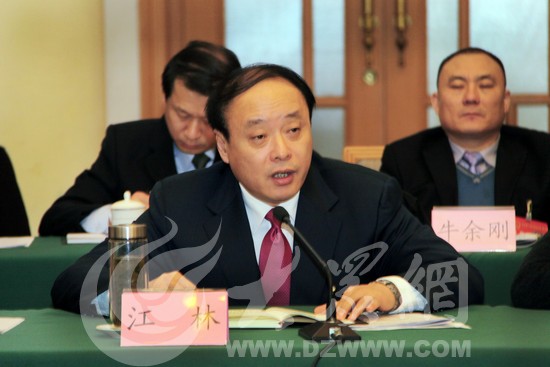 章丘市委書記江林在分組審議中講話。