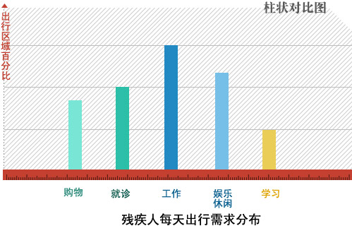 濟南市綜合交通調(diào)查的最新數(shù)據(jù)顯示,與一般想象不同的是,多數(shù)殘疾人每天都有一定的出行需求,三分之二的殘疾人會有每天出行的習(xí)慣。殘疾人的出行目的中,比重最大的是工作出行,占到總體出行的70%以上;其次為娛樂休閑出行、就醫(yī)就診出行、購物出行、學(xué)習(xí)出行。[詳細(xì)]