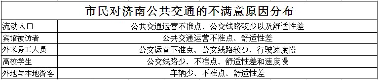 濟南市民對公共交通不滿意的原因分布表。