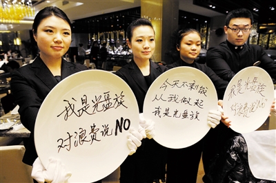 近日,中國式“剩宴”成為各界熱議的話題。為了更為有效地反對浪費,眾多的餐飲企業、政府機關、企事業單位等紛紛出臺了相應的改進措施,下狠力氣厲行節約、杜絕浪費,不少網民更是在網絡上發起以吃光盤子里的東西為主題的“光盤行動”,越來越多有識之士也積極加入到“光盤行動”中來。 新華社記者 李紫恒 攝
