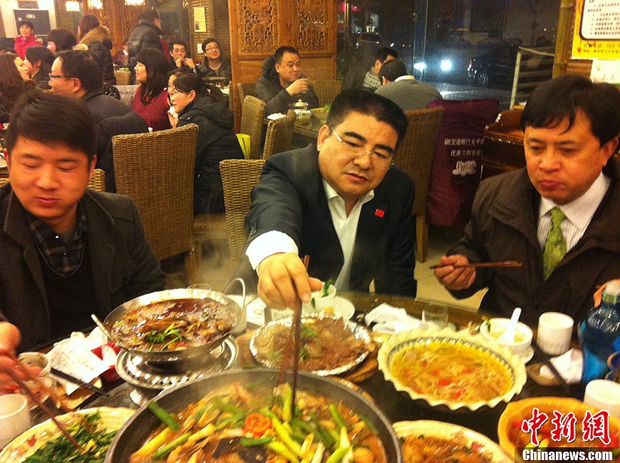 1月25日晚,江蘇黃埔再生資源利用有限公司董事長陳光標率領其公司40名員工來到南京街頭一飯店吃剩飯、剩菜。在出發前,陳光標不僅給員工開了“動員大會”,還給每個員工發了一雙筷子,并強調:“說百遍不如做一遍”。陳光標表示,從明天開始其公司食堂不燒晚飯,鼓勵員工走上街頭飯店吃剩飯、剩菜,希望能夠以點帶面,讓更多人節約糧食和水電。黃鸝攝