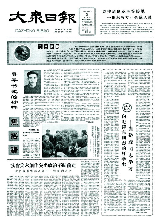 1966年本報頭版刊登焦裕祿事跡。