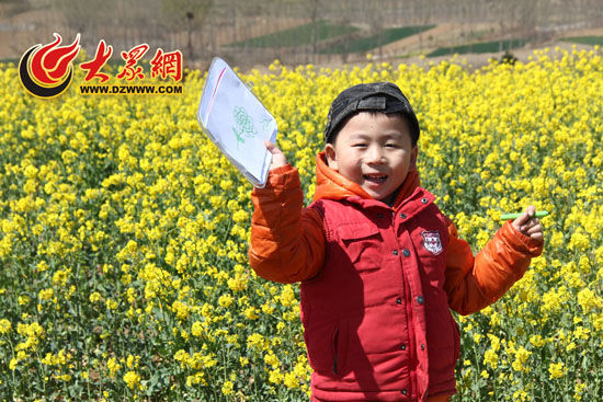 小朋友在“油菜花海”中展示自己的圖畫