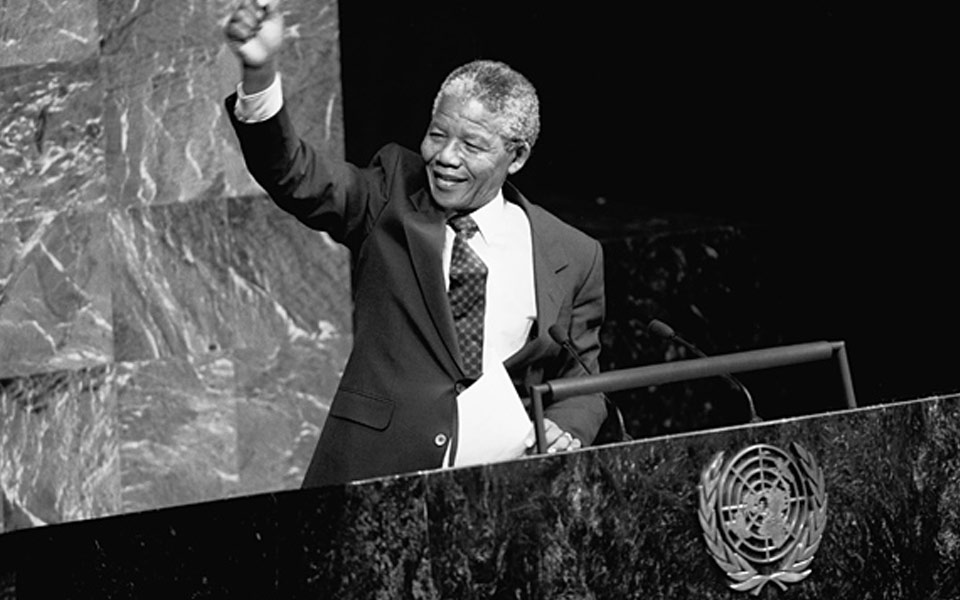 1990年6月22日,紐約聯(lián)合國總部,南非反種族隔離領(lǐng)袖、南非非洲人國民大會(huì)(ANC)主席曼德拉發(fā)表演講,獲得掌聲。曼德拉呼吁聯(lián)合國維持對(duì)南非的制裁,直到種族隔離制度被廢除。1991年,他與南非總統(tǒng)德克勒克一起獲得了聯(lián)合國科教文組織頒發(fā)的"烏弗埃-博瓦尼爭取和平獎(jiǎng)";1993年10月,曼德拉與德克勒克一起榮獲"諾貝爾和平獎(jiǎng)"。