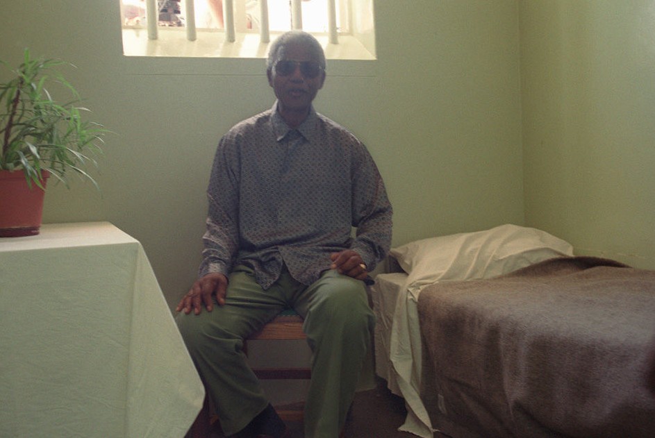 1995年2月10日,時任南非總統曼德拉重訪位于開普敦羅本島的監獄。他曾在這里度過27年牢獄生涯中的19年。圖為關押曼德拉18年的羅本島囚室。