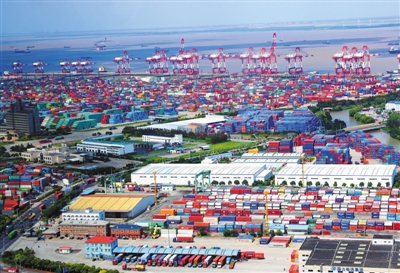 9月26日,地處中國(上海)自由貿易試驗區(qū)內的外高橋保稅區(qū)碼頭,一片繁忙景象。新華社發(fā)