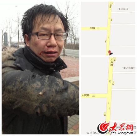 2月1日凌晨1:14,@陳寶成繼續(xù)發(fā)微博說:“我差點(diǎn)成了山東平度版的‘錢云會’”,并同時發(fā)布了“關(guān)于本人五分鐘內(nèi)兩次遭遇暴力襲擊的說明”長篇博文,并附上了自己被打得口鼻流血、衣服上沾滿泥巴的“受難者”照片,并@他所在的單位財(cái)新網(wǎng)。